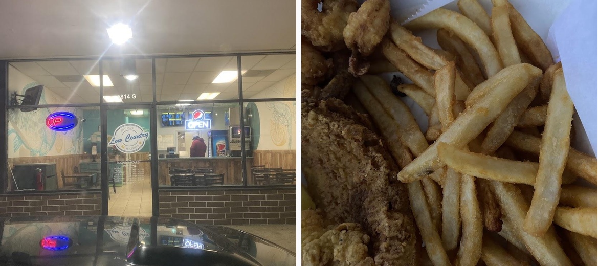 A pleasant find! Looking for some good seafood, this is the place to go! Lemon pepper salmon, lemon pepper shrimp, garlic Parm wings, fried okra were delicious. Cole slaw had a unique flavor, which was the best we have had. Chef was very friendly and chatted a few minutes. Down side was that even though there are tables to eat at, there are no napkins or condiments at them. As they get busier, that may change. Very glad we found Low Country Seafood as we will be frequent visitors.