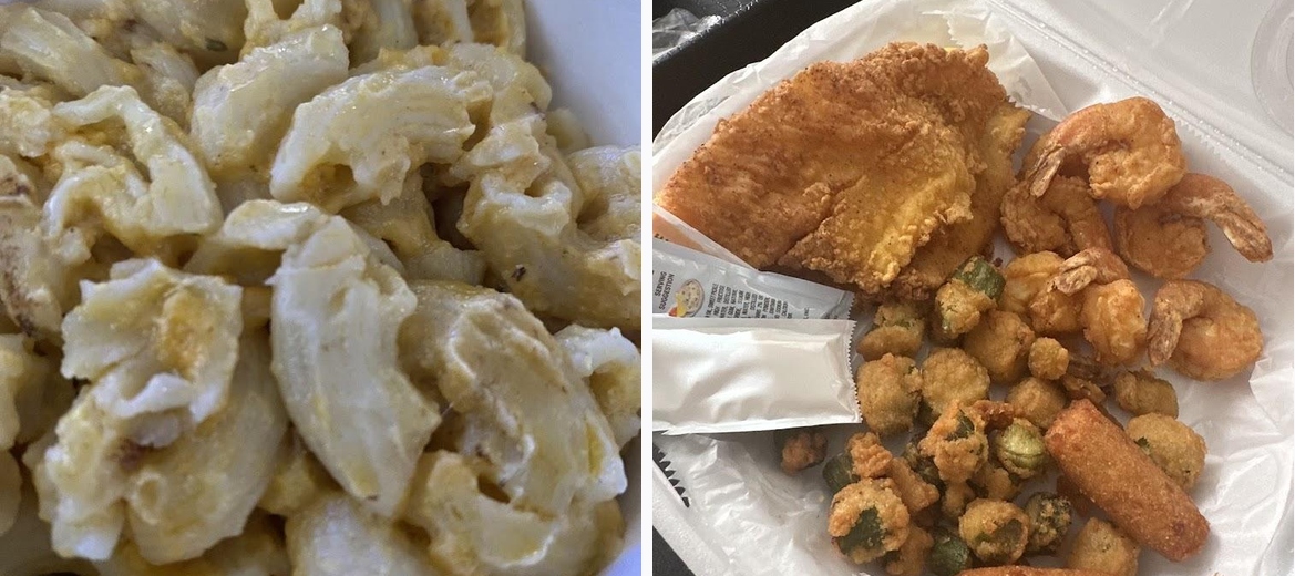 Ordered through DoorDash. Catfish was delicious and seasoned well! I didn’t eat it with any sauce because it was that good! French fries were nice and crispy. The shrimp was good as well! Hubby loved the grilled tilapia. The Mac & cheese was good!